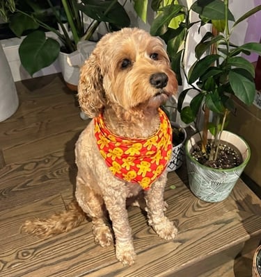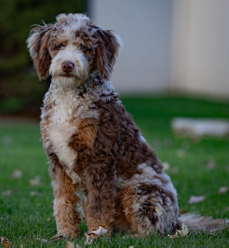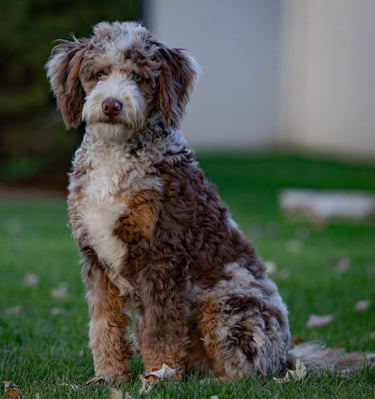 We are excited for Gabby's upcoming pairing with Rocky, a Chocolate Merle Mini Bernedoodle. We expect pups to be